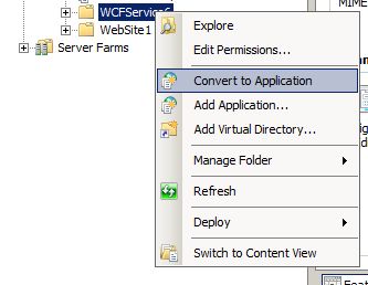 Fair warning: I've done this three or four times now to make sure things work, but I haven't started from scratch on a new machine to run through the steps as I present them, here. Could be wonky somewhere. YMMV. So let's start a WCF Service project. You select File >>> New Web Site >>>WCF Service. Save the new project in IIS's root folder. That'll create a project with the file structure seen below: ![]() Looking in Web.config, you'll see that, by default, this project has two endpoints. One is the MEX endpoint, which is nice, but not really the business end of things. The other is a wsHttpBinding. That's important, because, as we learned above, that expects to be called from a SOAP-compliant client. If you try hitting F5 off the bat, it'll seemingly work, first going to a URL like this one: http://localhost:50319/WCFService1/Service.svc But if you try to view the GetData method, which is one of the two IService methods that Service.cs implemented by default, using a URL like this one: http://localhost:50319/WCFService1/Service.svc/GetData ... you get no response, just a 400 error. So it's worth saying that it's odd to have a SOAP client in my line of programming. You'd usually rather send out a very simple AJAX request to a URL from a web page to the WCF and receive some JSON back to parse in Javascript. The take-home is that we need to remove the wsHttpBinding (set up for SOAP) and set up webHttpBinding (ready for REST) instead. The endpoints that Visual Studio inserts into web.config by default are below: <endpoint address="" Our next step is to change that wsHttpBinding endpoint to one with webHttpBinding. I've also inserted the additional overhead of adding a JsonBehavior. Honestly, not sure what that's doing yet, but I think I want it. <system.serviceModel>(In case I've screwed up, the entire config is here.) Again, switching from wsHttpBinding to webHttpBinding makes it so that we can use a URL to access the method. With wsHttpBinding, you'd have to have a SOAP client, which involves insane amounts of overhead for most of my applications. There's more required than that, however. If you've got the same standard setup as I get in VS 2010, you've got two methods in the Service.cs file. One is pretty easy to set up to listen to query strings for its parameters; [OperationContract]Now, you should be able to nav to GetData and slap in a param of "?value=1231" and have that number repeat back to you with a URL like this: http://localhost:50319/WCFService1/Service.svc/GetData?value=10 You'll see "You entered: 10" (with quotes) in the web page. ![]() You can also leave the port off if you followed the instructions and created the dir in IIS' home dir and created the application using Internet Information Server (IIS) Manager. Go to your default web site, find your server's folder, right click, convert to application, and voila: ![]() Unfortunately, the other method in the default project (GetDataUsingDataContract) is more complicated, as if you try to turn it into a GET-able method, your WCF Service will complain about the CompositeType hand-rolled datatype that's also part of the project VS 2010 dreams up for you. [OperationContract] You can't webget that because CompositeType isn't serializable. Operation 'GetDataUsingDataContract' in contract 'IService' has a query variable named 'composite' of type 'CompositeType', but type 'CompositeType' is not convertible by 'QueryStringConverter'. Variables for UriTemplate query values must have types that can be converted by 'QueryStringConverter'. Whoops. I'm not going to go into serializing to JSON right now. All things considered, that's an easy afterthought after this XML config wading. So perhaps not the best composed, but that's today's lesson. (A decent walkthrough of a slightly different way to go about this here.) posted by ruffin at 5/03/2012 03:52:00 PM |