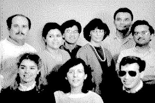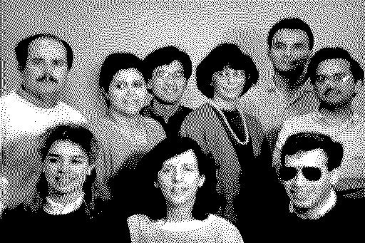 Ghosts in the ROM � NYC Resistor: While digging through dumps generated from the Apple Mac SE ROM images we noticed that there was a large amount of non-code, non-audio data. Adam Mayer tested different stride widths and found that at 67 bytes (536 pixels across) there appeared to be some sort of image data that clearly was a picture of people. The rest of the image was skewed and distorted, so we knew that it wasn’t stored as an uncompressed bitmap. A 25 year-old Easter egg. That's awesome. Here's one of the four hidden images. Labels: apple posted by ruffin at 8/31/2012 12:35:00 PM |