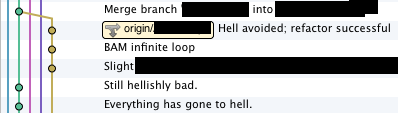![]() It's actually pretty enjoyable looking back over a git branch history. Labels: git posted by ruffin at 8/17/2012 11:42:00 AM |