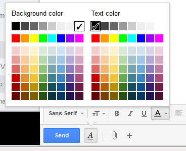 Part of Gmail's latest interface overhaul was to tweak composition into that crazy little box that pops up in the bottom right of your browser window. If I want to highlight text that I'm writing inside of that little iframe-ish thing, I select it, click that crazy tiny A icon, keep my mouse on that wacky row of choices, FIND ANOTHER A icon (this time not in italics), click that, then mouse over to the left to choose my color from that groovy pallet.