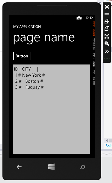I know there's really no market on Windows Phone 8+, relatively speaking, and even after reading Sinclair's thoughts on making a living as an app maker in general, I've got to say that Windows Phone is pulling me back in, and it's solely about the tools. Xamarin just went to an optional subscription model, and $25 for a month of Android porting puts that platform back on the table, but I still couldn't get Xamarin.Android up and running in the Android emulator, even using the Android Designer Walkthrough. Apparently the emulators that Xamarin Studio installed for me by default weren't recent enough to work with the designer, and then when I created a Nexus 5 emulator to nuke that issue, the simplest case app never opened. Xamarin's neat, but it's still very rough around some edges. I'll use it on OS X for iOS, but the Android side drives me crazy. Visual Studio Express 2012 for Windows Phone seems much nicer than Xamarin.Studio on Windows 8. My biggest pain is that the version of .NET for Windows Phone is a painful subset of .NET for desktop -- or even for other mobile platforms via Xamarin, an irony I've lamented before. But the emulator and IDE interaction is, so far, top notch. So I've cleaned up SqlDb# a bit and thankfully fairly painlessly got it at least running on WP8 again. Ah, the only big "find" for Windows Phone 8 here is the path to the "home folder", so to speak. Here's the code, straight for MSDN, though it took some Googling to find it. Windows.ApplicationModel.Package package = Windows.ApplicationModel.Package.Current;