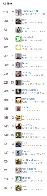 It should also be hard to receive that much value without giving something back. Admittedly, I'm nowhere near as "giving" as one of my old coworkers, who is creeping up on 80,000 StackOverflow points as I blog. But you shouldn't feel good about benefiting from StackOverflow without finding some means of giving back.