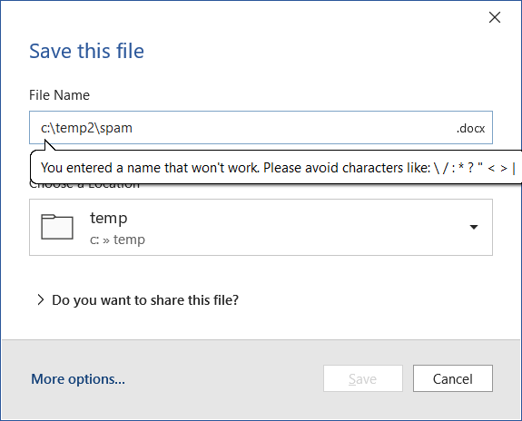 I'm obviously trying to save the file to my local drive. And I obviously would prefer not to have to navigate that horrendous UI Word has now to move from OneDrive to my drive.